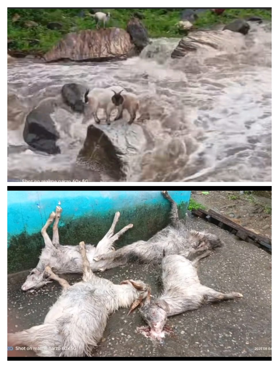 बारिश से अचानक बढ़ा गदेरा का जल स्तर, ऊफानती गदेरे की चपेट में आई बकरियां।।