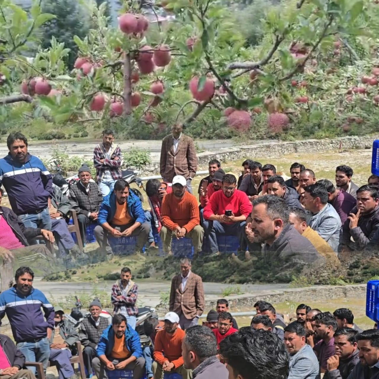 शुक्रवार को स्थानीय काश्तकारों ने झाला के कोल्ड स्टोरेज परिसर में युवक मंगल दल के सदस्य और सामाजिक कार्यकर्ता एकत्र हुए और सेब को सरकार द्वारा 2013 की तर्ज पर उचित दाम पर खरीदने की मांग को लेकर शांतिपूर्ण धरना दिया।