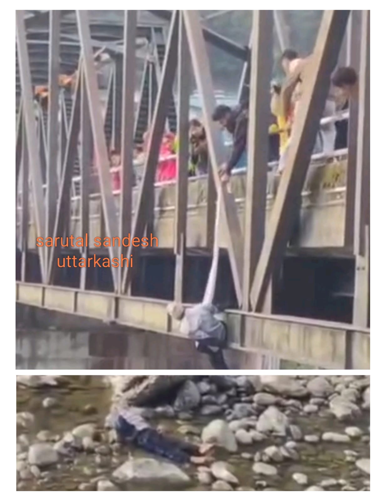 उत्तरकाशी : उत्तरकाशी स्थित तिलोथ पुल से दोपहर बाद एक नेपाली निवासी गंगा नदी में छलांग लगा दी पूरा घटनाक्रम सीसीटीवी कैमरे में कैद हो गया है।