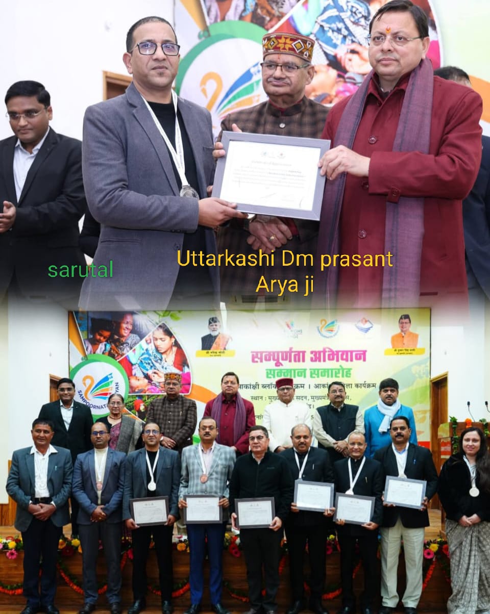 देहरादून: मुख्यमंत्री पुष्कर सिंह धामी ने शुक्रवार को मुख्य सेवक सदन, देहरादून में सम्पूर्णता अभियान सम्मान समारोह कार्यक्रम में प्रतिभाग किया। इस अवसर पर मुख्यमंत्री ने नीति आयोग, भारत सरकार द्वारा प्रदत्त प्रशस्ति पत्र एवं पदकों से आकांक्षी जनपद कार्यक्रम एवं आकांक्षी ब्लॉक कार्यक्रम में सर्वश्रेष्ठ प्रदर्शन करने वाले जिलों एवं विकासखंडों को सम्मानित किया। इस अवसर पर मुख्यमंत्री ने Uttarakhand at 25: A Himalayan State With Infinite Possibilities पुस्तक का विमोचन भी किया।
